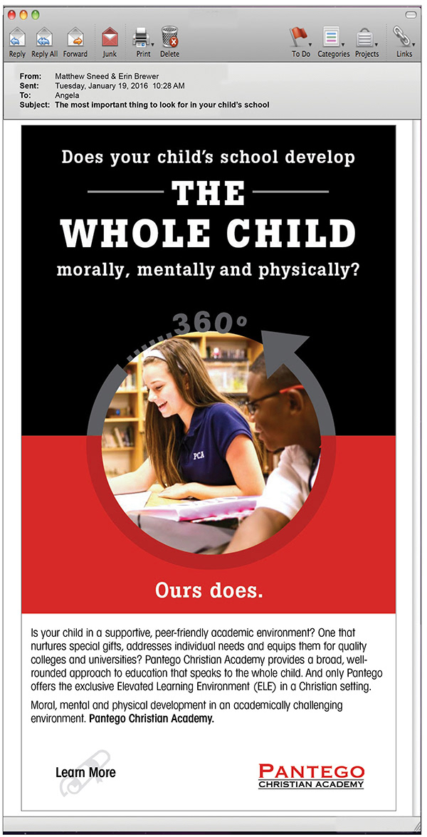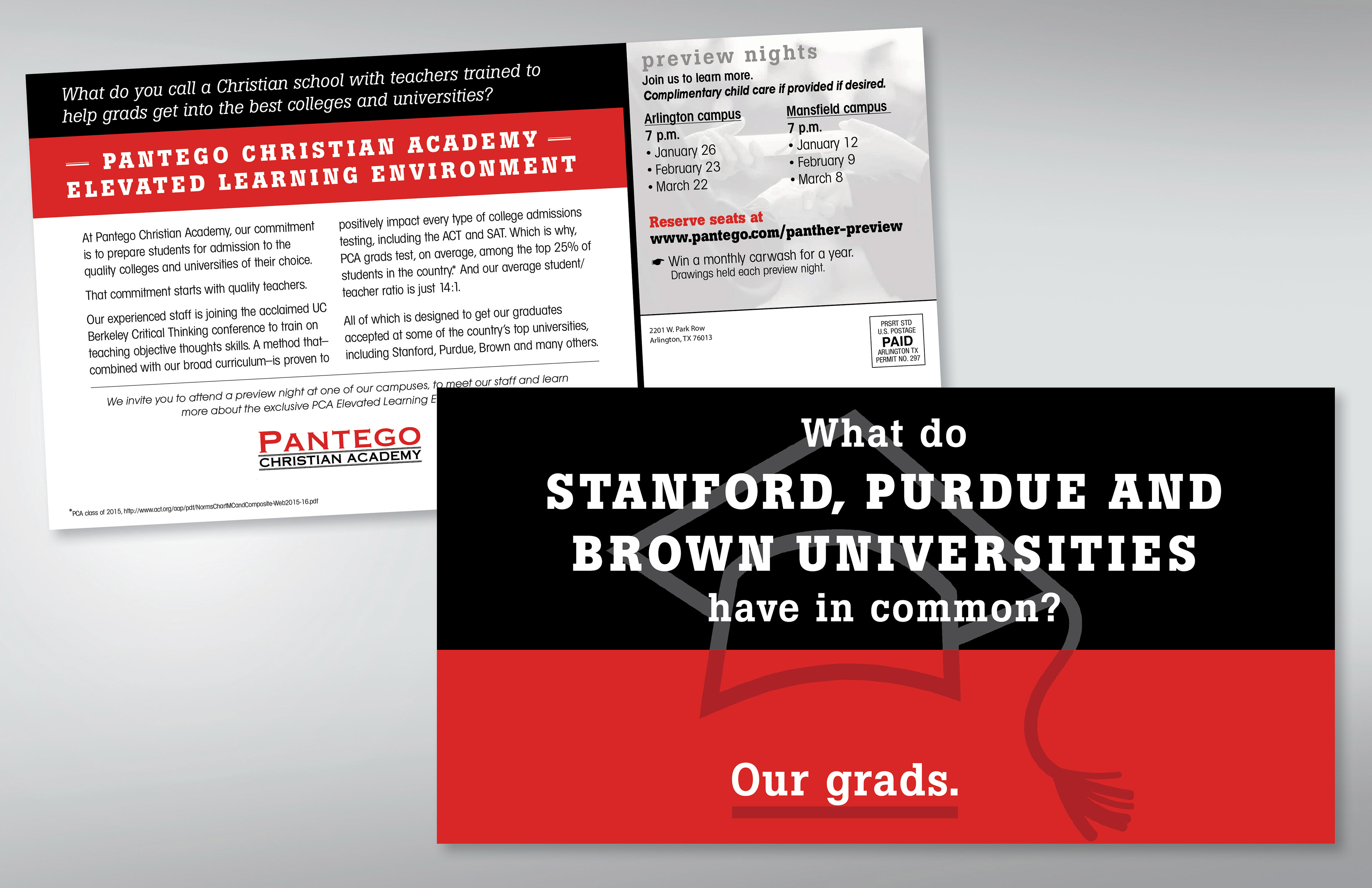Pantego Christian Academy. This enrollment campaign was designed to establish their name, and